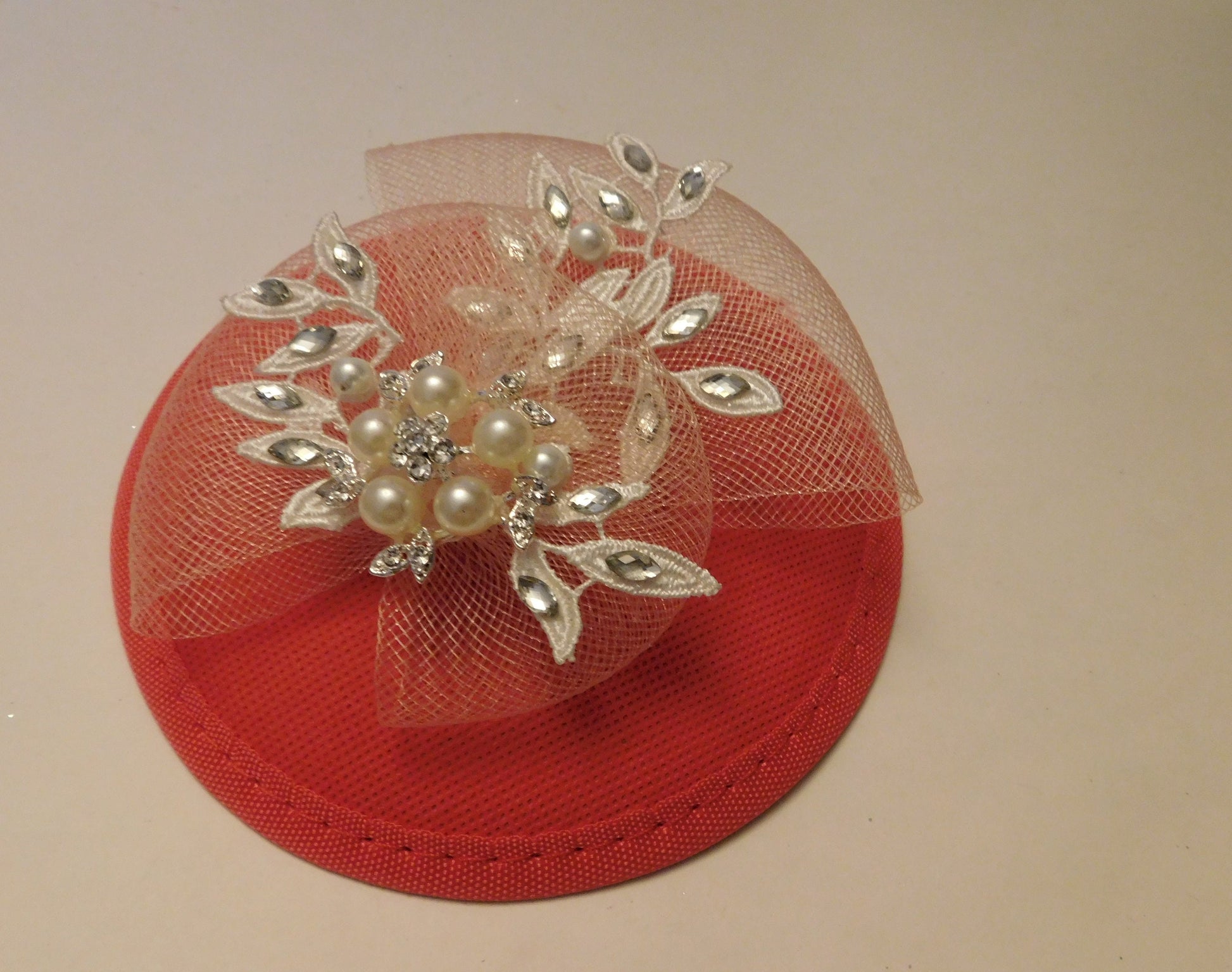 Pink Hat Fascinator with pink Bows Crystal Lace and Pearl jewel Wedding,Goodwood revival,Cocktail,Prom hat fascinator