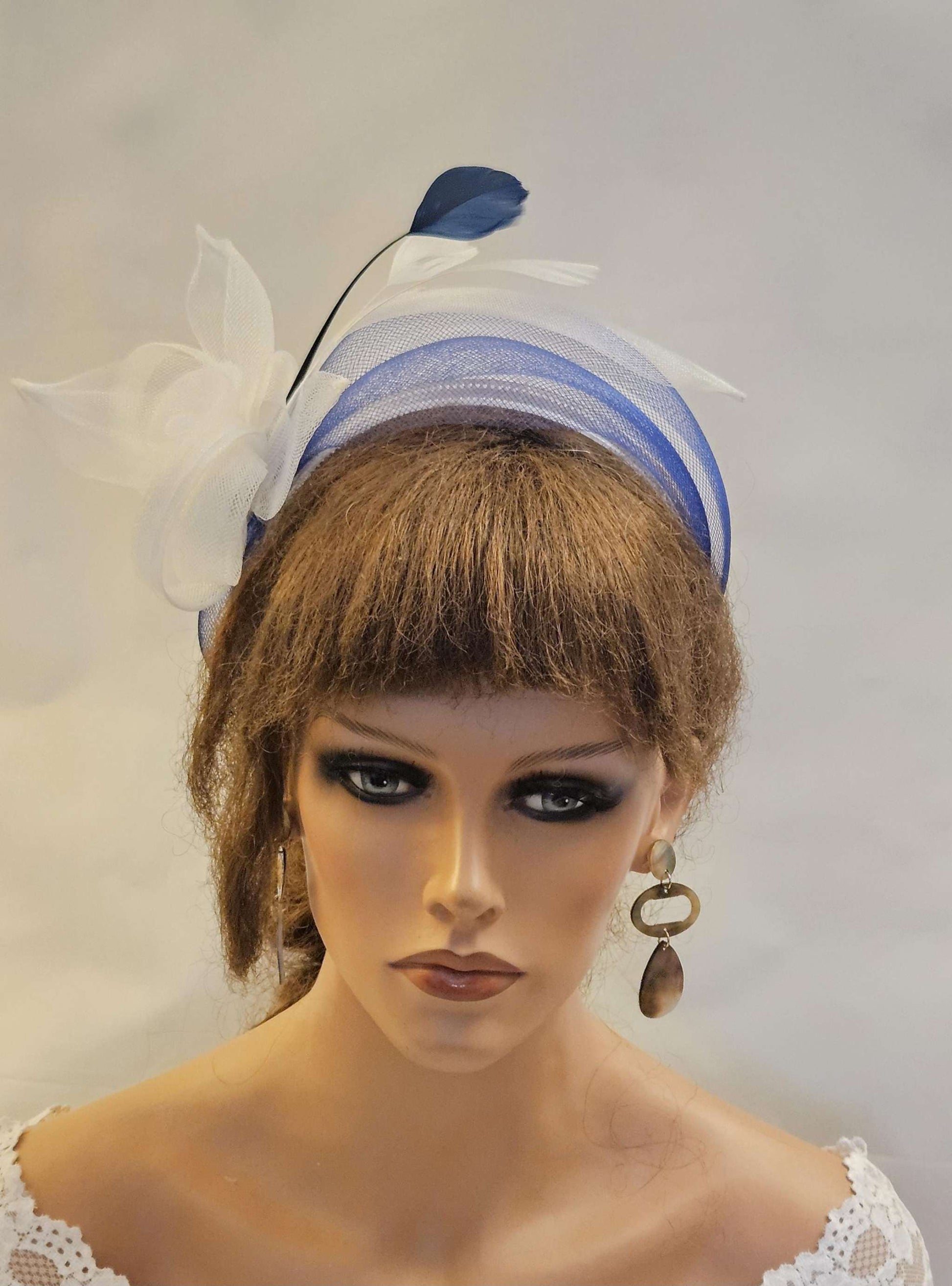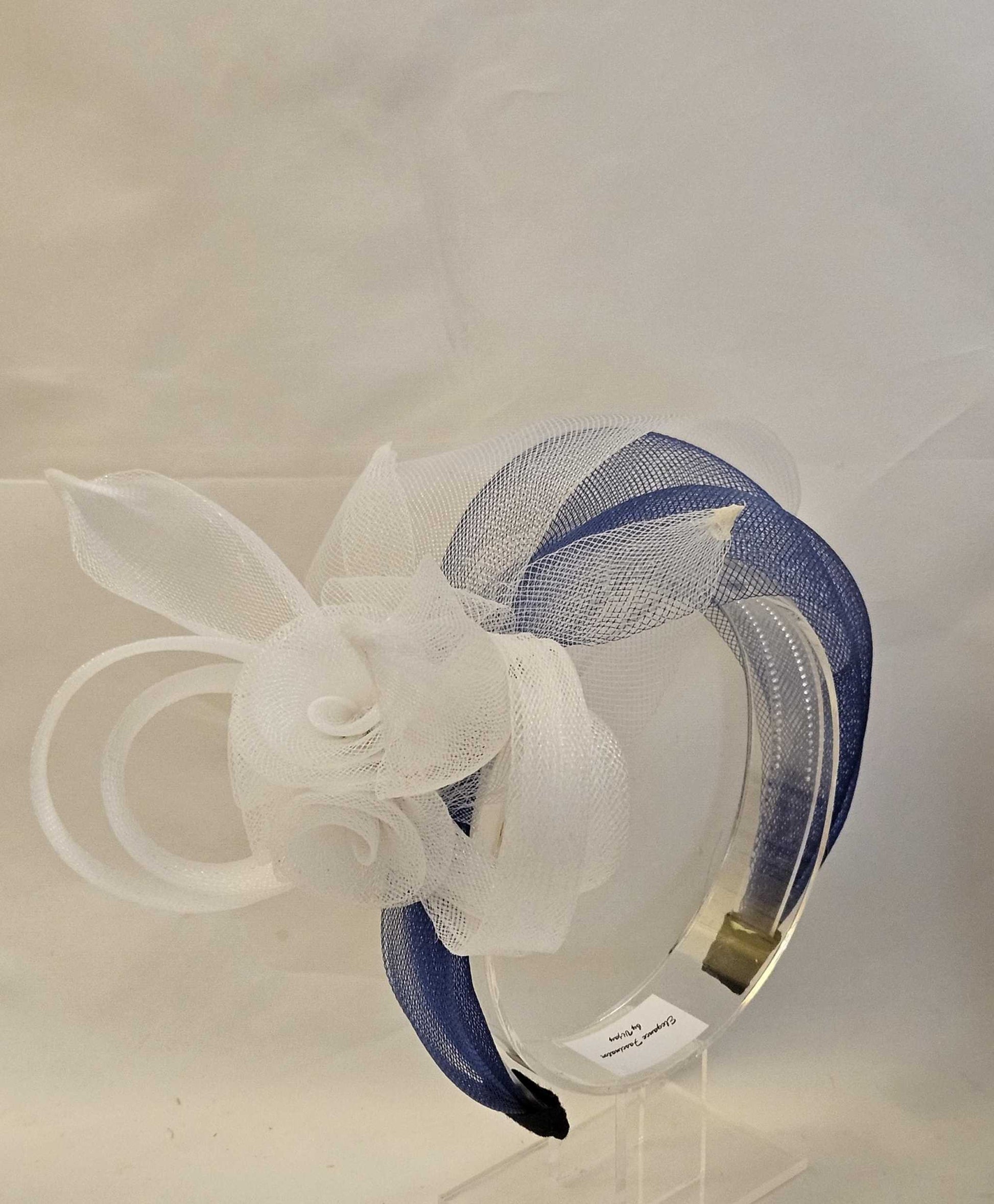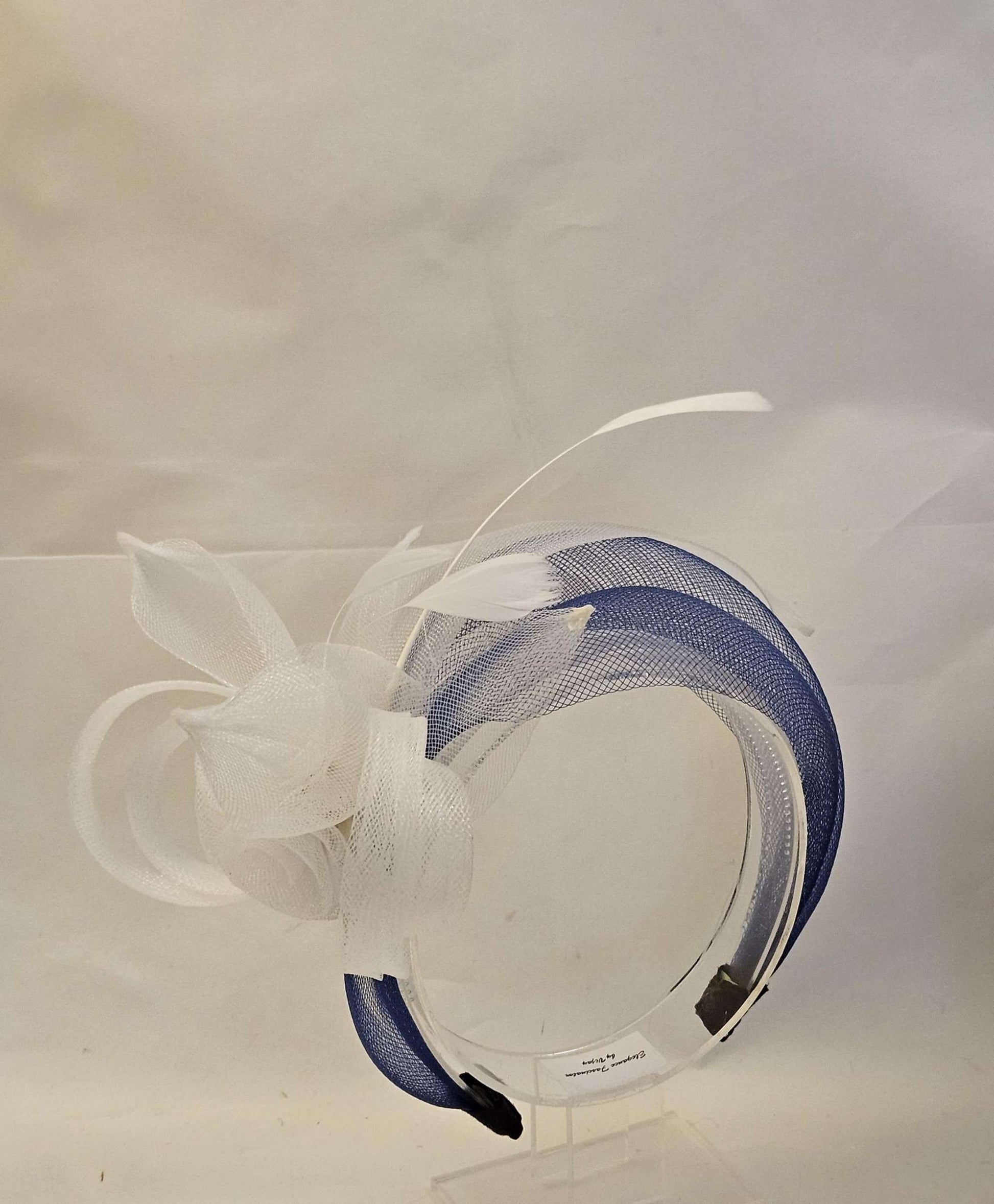 WHITE & NAVY Blue Crinoline HEADBAND Fascinator.Race,TeaParty, headpiece. Wedding guest,Mother of Bride Headdress