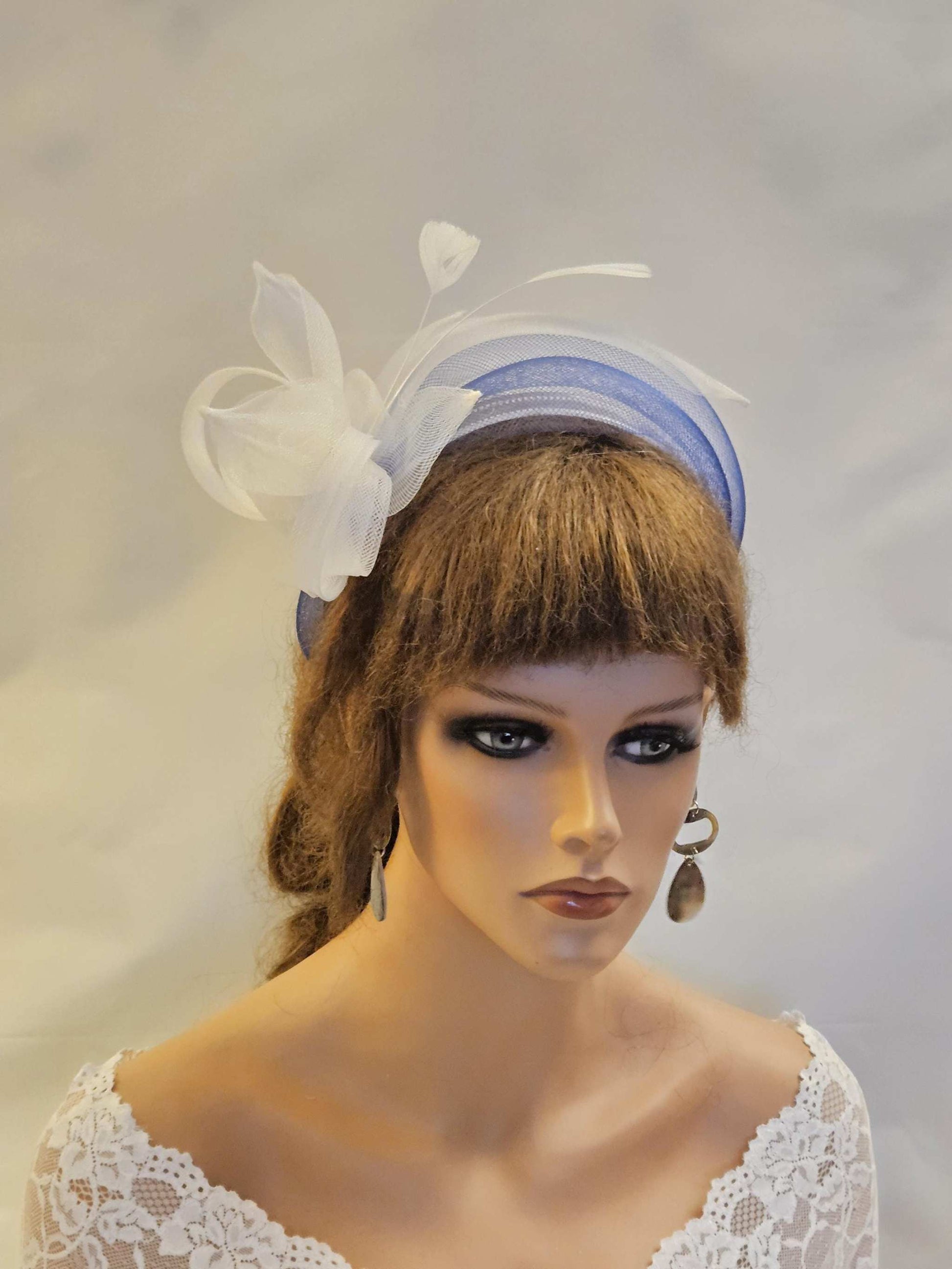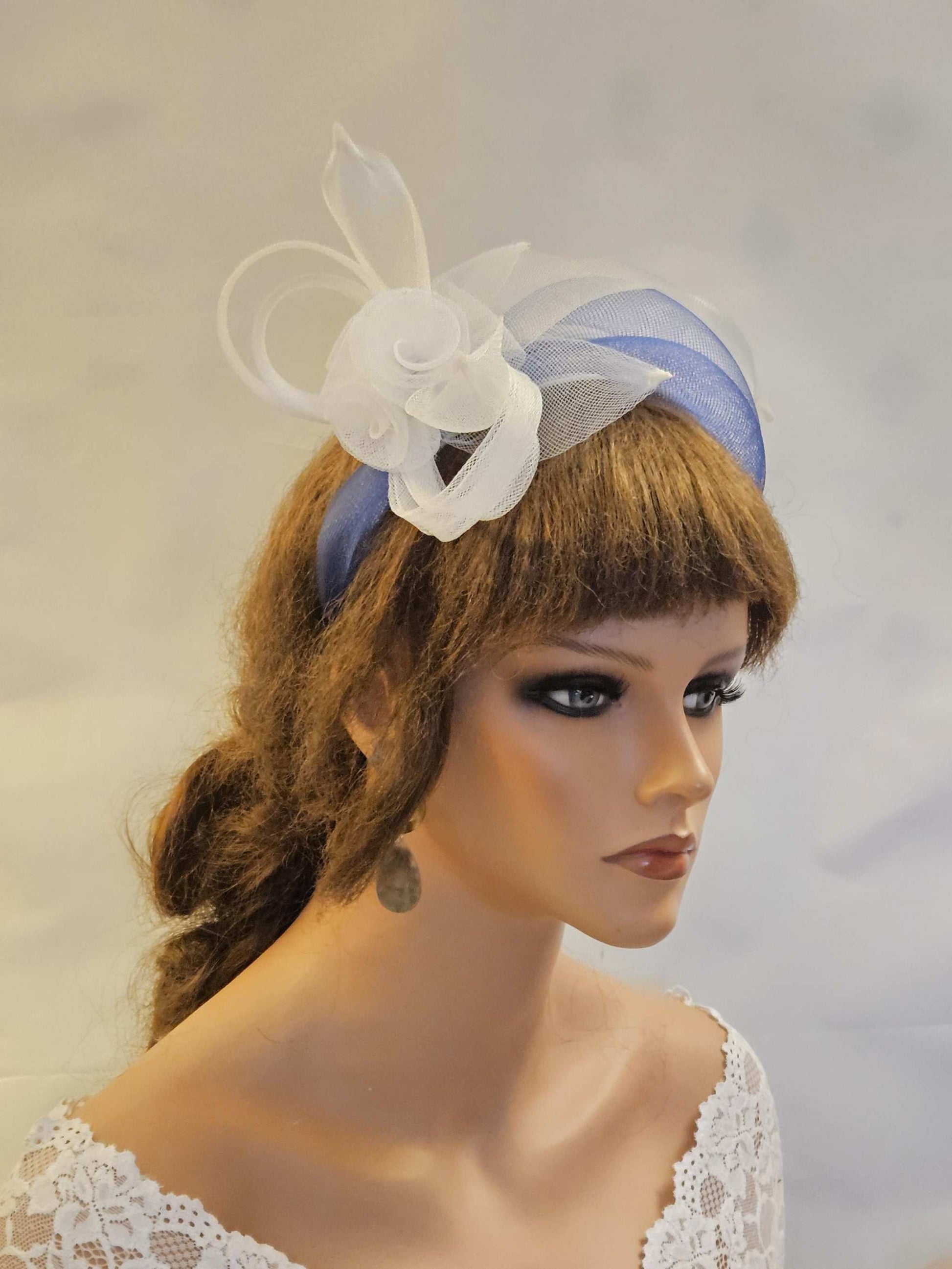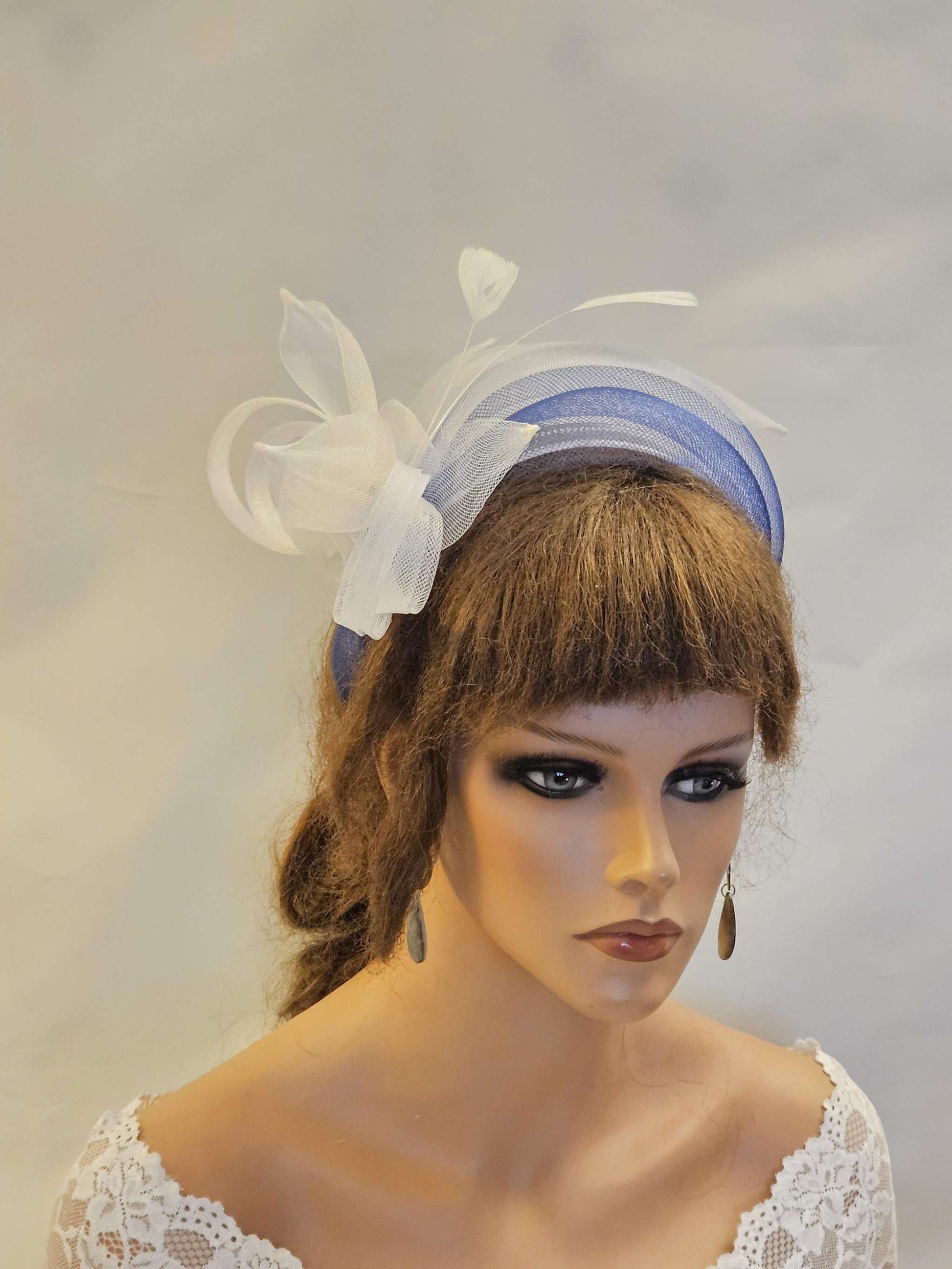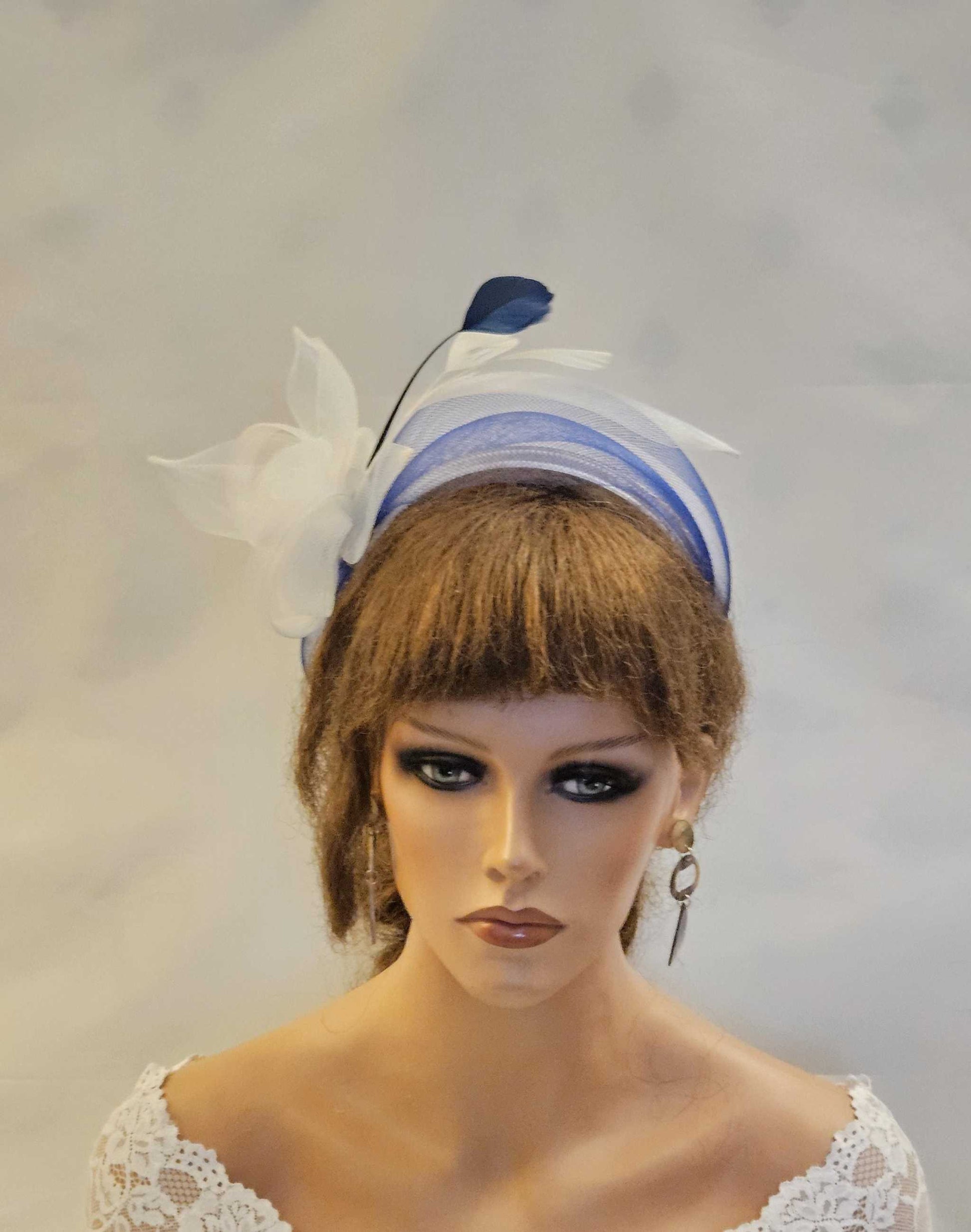 WHITE & NAVY Blue Crinoline HEADBAND Fascinator.Race,TeaParty, headpiece. Wedding guest,Mother of Bride Headdress